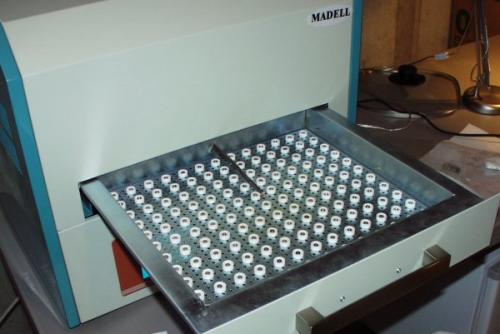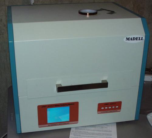 正如你所看到的,托盤非常大。 烤箱內(nèi)置風扇用于冷卻。 元件是紅外線,加熱速度非???,可以非常接近地監(jiān)測溫度。 纖細的棕色是溫度傳感器,應該貼在每個回流的PCB上 - 這是我們從未做過的事情。
