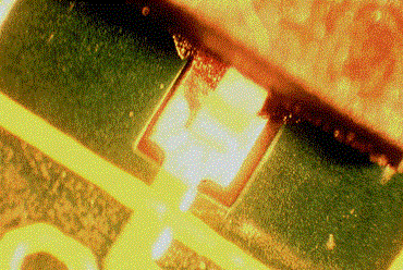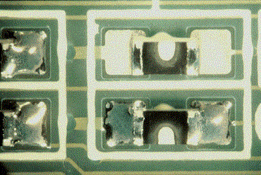圖2:焊盤表面的粘合劑污染導致這種焊錫跳躍。