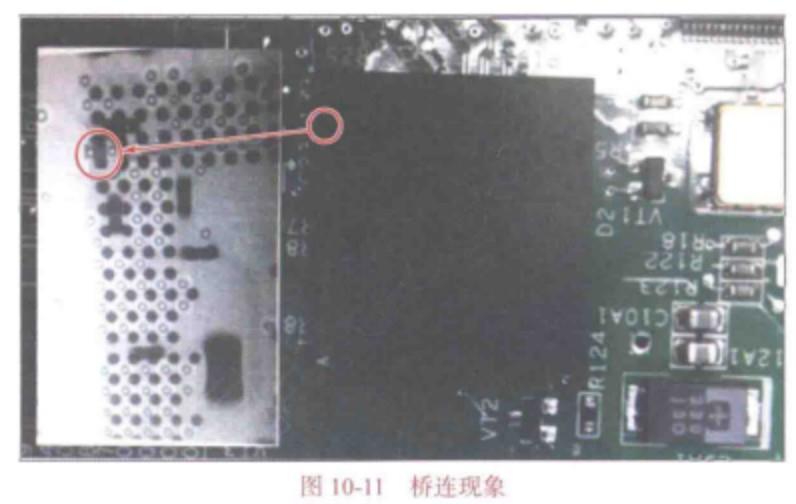 某BGA 固定位置橋連達到10%,橋連位置如圖10-11所示。